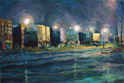 2007 Allston Trainyard Boxes at Night 36x24” Oil on Canvas Price available upon request